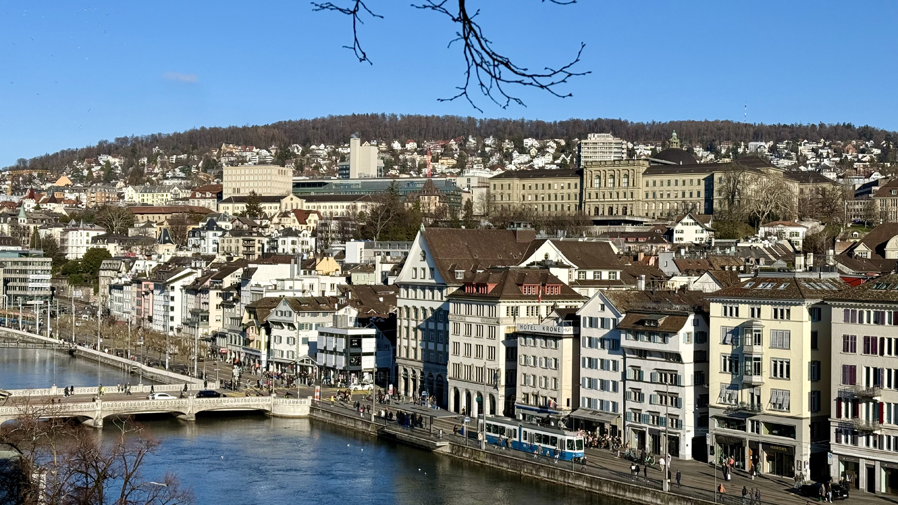 gesellte sich hinzu, um das von Sonnenstrahlen erleuchtete Limmatquai