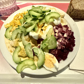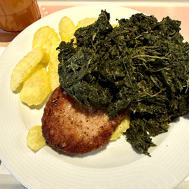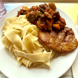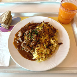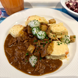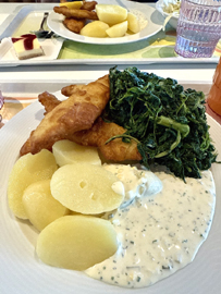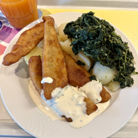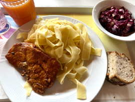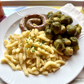 mit Kartoffelstock. Mmmmmh! Als Nachspeise winkte ein kleiner