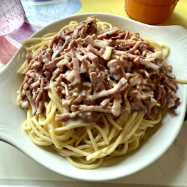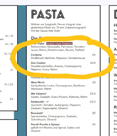 weil dort Hörnli und Ghackets zum Zmittag angepriesen wurde.