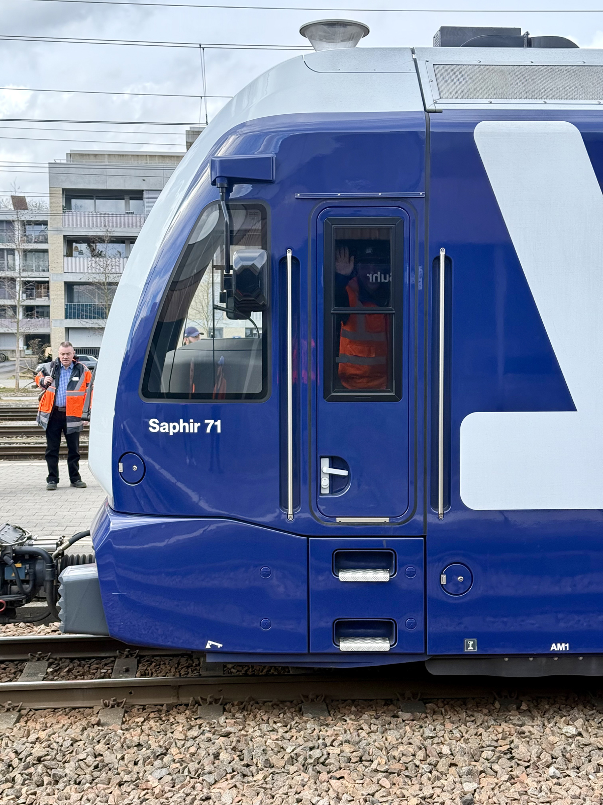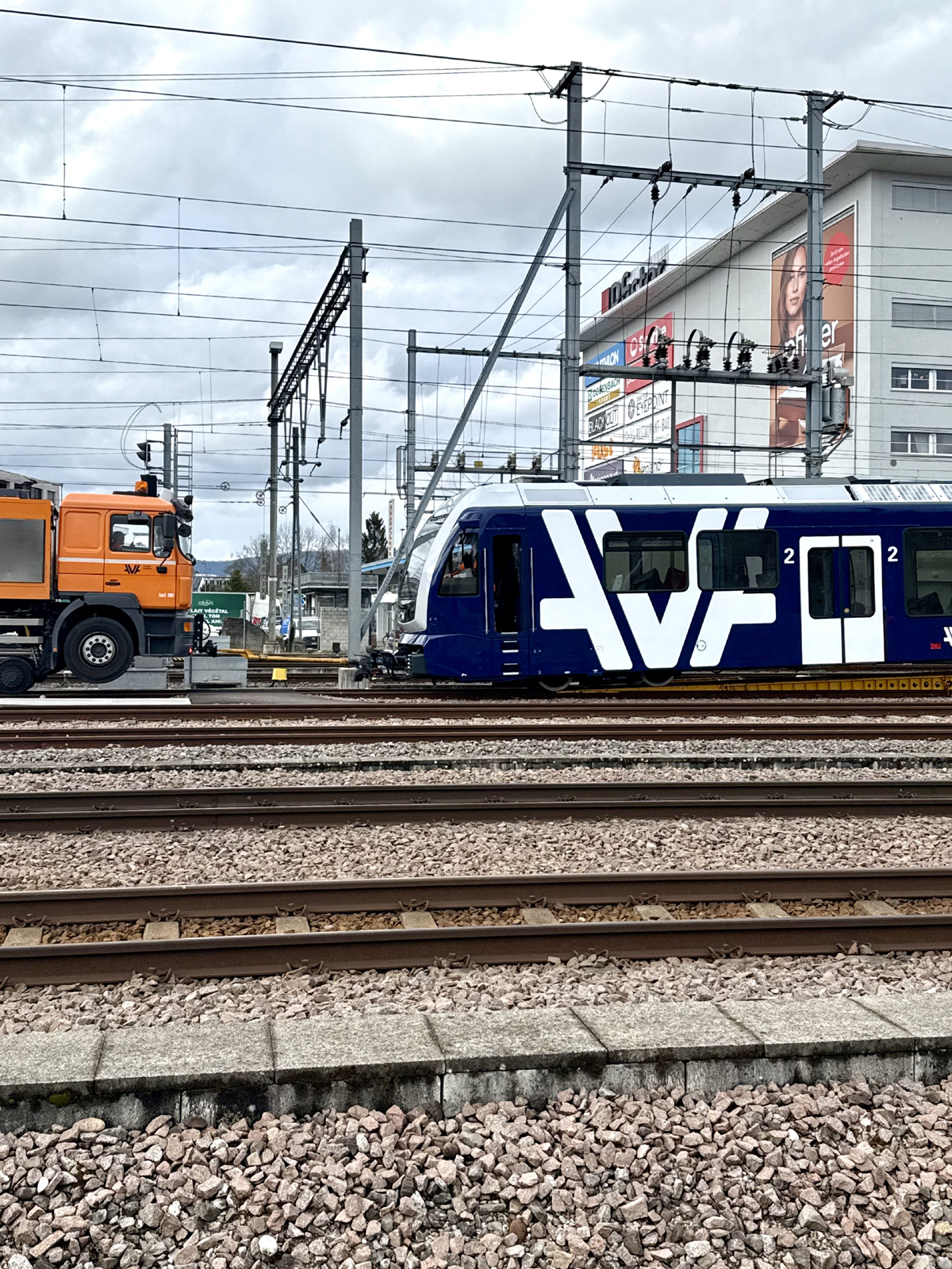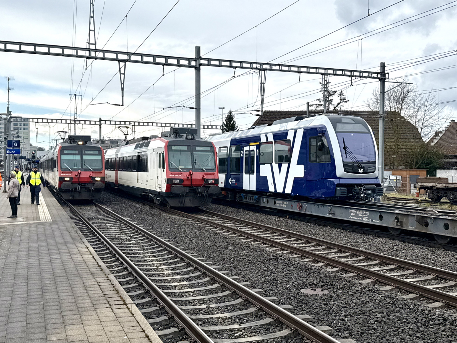 Dann endlich Abwechslung am Dienstag und wieder unter Menschen: In Suhr ist der vierte Saphir II Be 4/8 der AVA/WSB, die Nummer 44, angeliefert worden. Und mit Andreas war es grad doppelt so spannend.