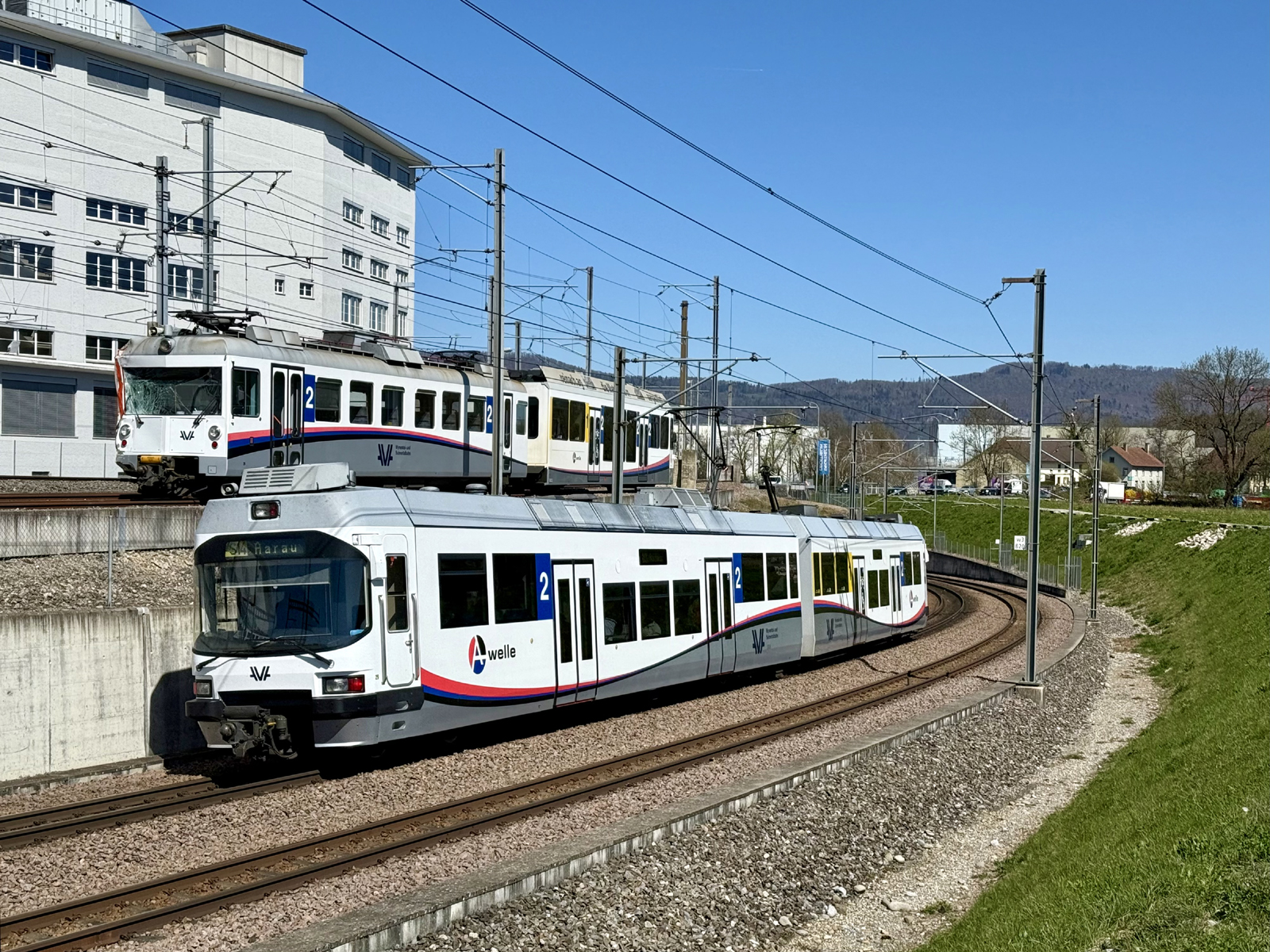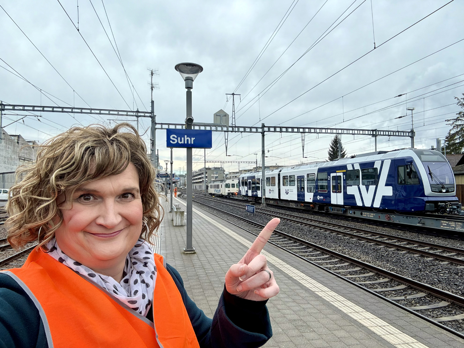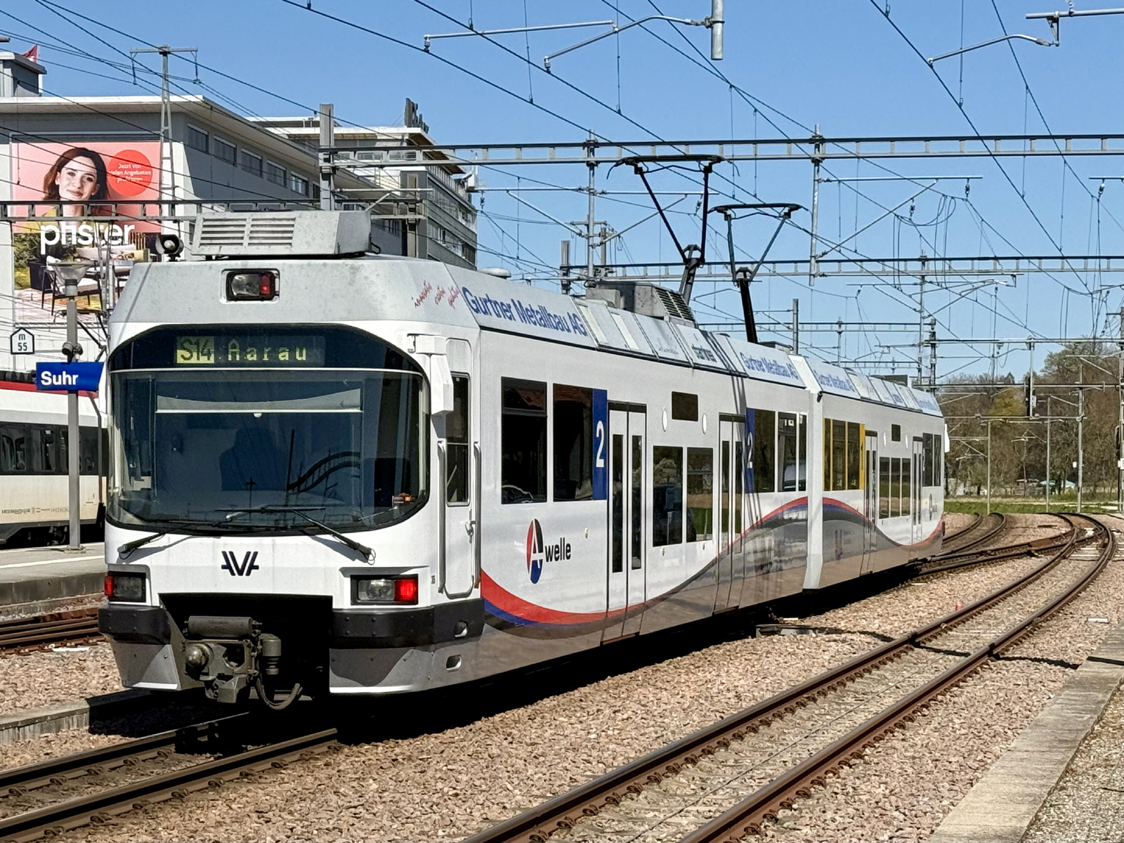 Dann endlich Abwechslung am Dienstag und wieder unter Menschen: In Suhr ist der vierte Saphir II Be 4/8 der AVA/WSB, die Nummer 44, angeliefert worden. Und mit Andreas war es grad doppelt so spannend.