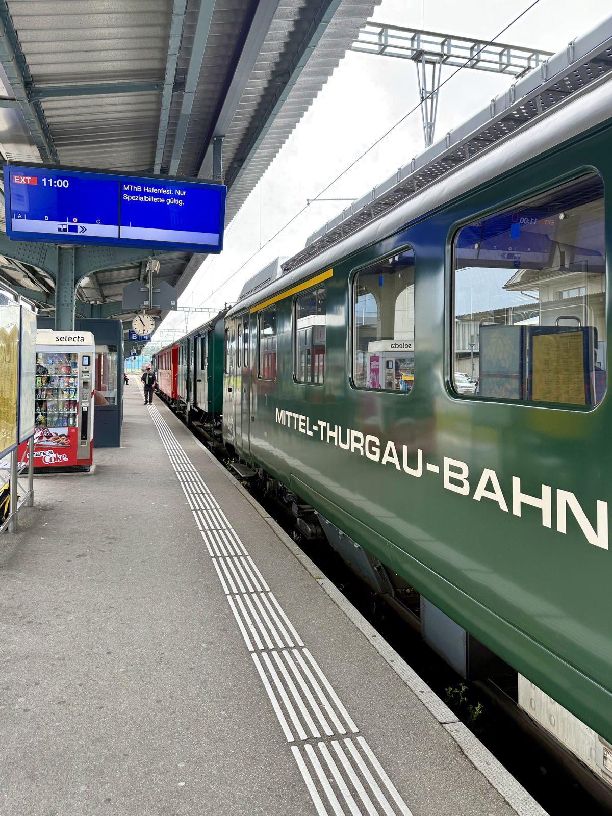 Die Agenda des Wochenendes war dann wieder gähnend leer, doch ich konnte mich am Sonntag aufraffen, die in der Schublade schlummernde Spartageskarte zu nutzen: Erst für den "Foifer und Weggli" nach Basel, dann zu Pasteli mit Brätkügeli nach Sankt Gallen, und am späten Nachmittag zur Seilbahn Rigiblick,