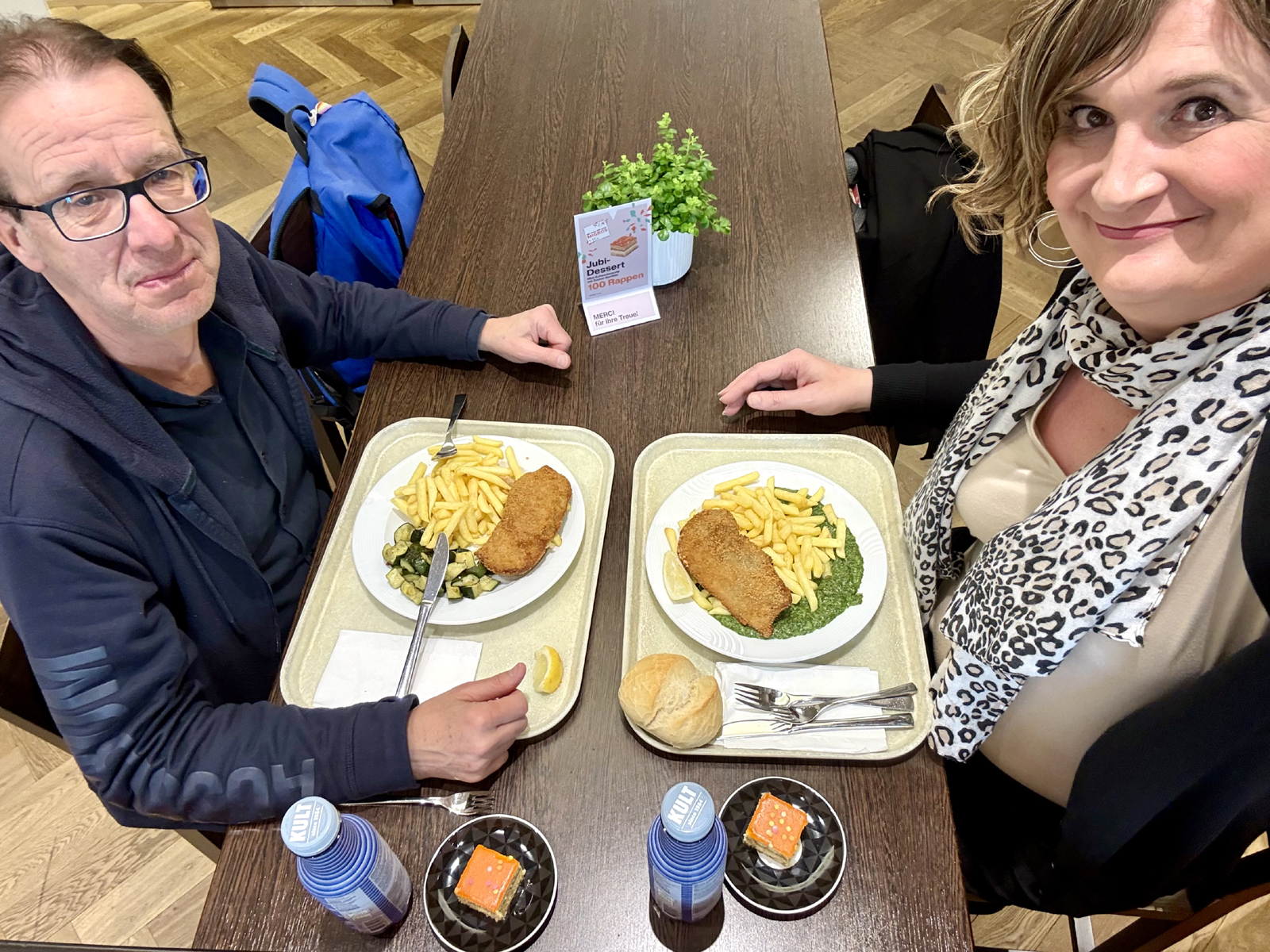 inklusive dem Zmittag auf Kosten des Arbeitgebers. Vielen Dank!