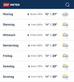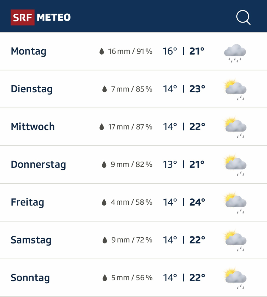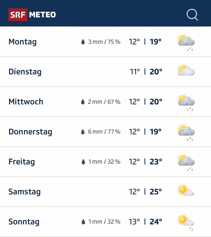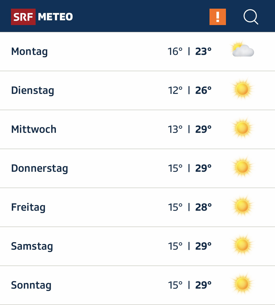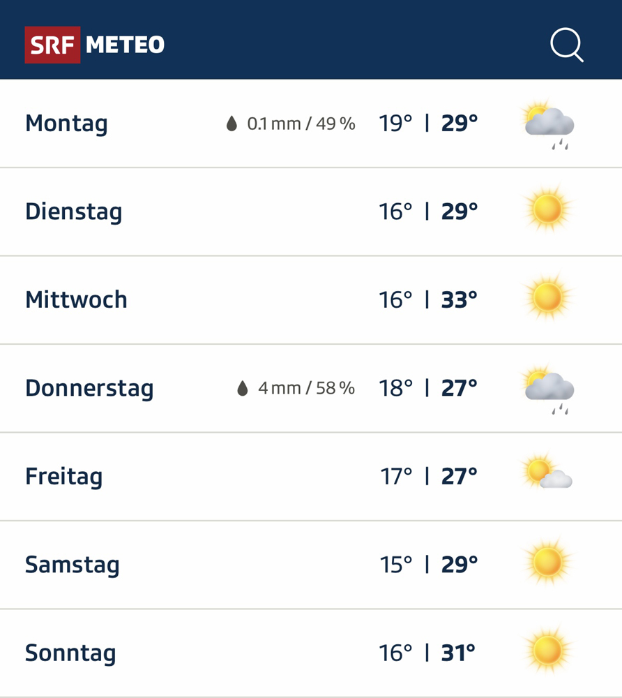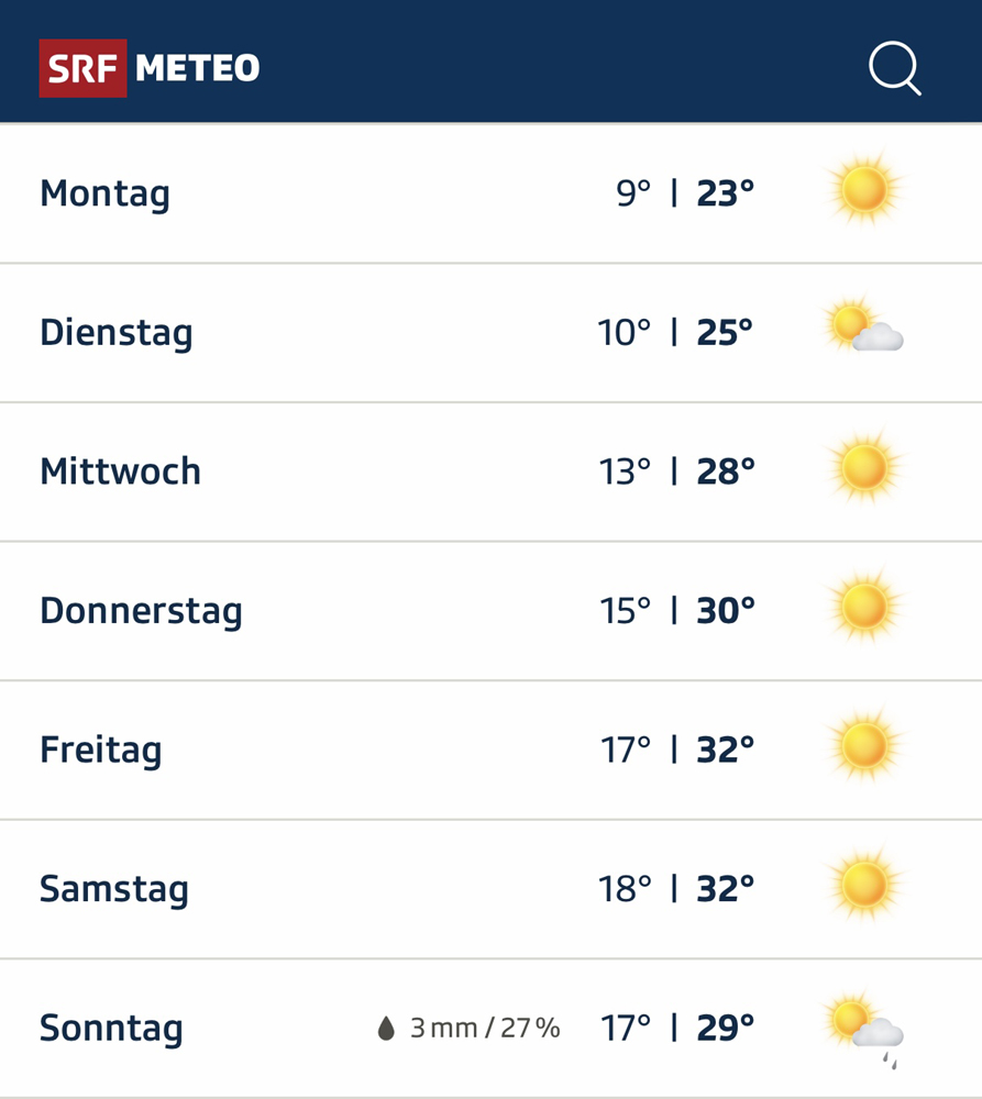 Und am Sonntag dann soar ein Hitzetag mit gegen 34°C. Ufff, das schreit förmlich nach weiterer Ruhezeit im kühlen Schatten.