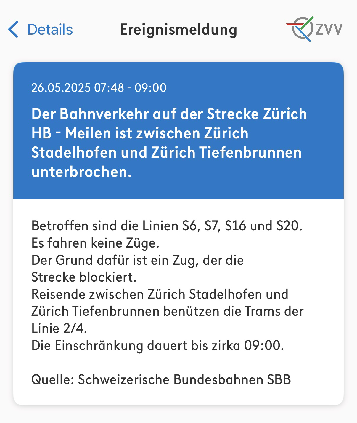 die heute letztmalig in bisheriger Form fahren würde. Es folgt ein