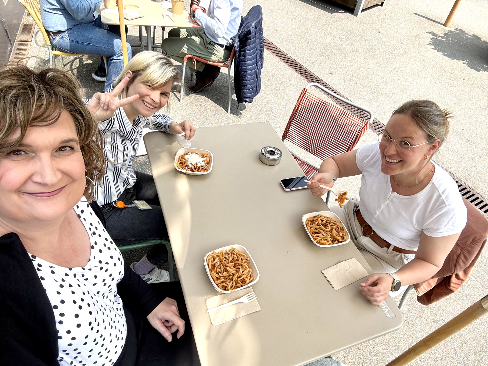 Zmittag zig es Karin und Katharina zur Markthalle beim Viadukt zum Pasta Mercato.