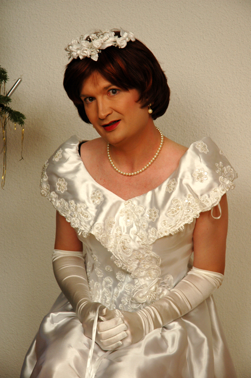 Bei dieser Gelegenheit habe ich meiner Fantasie für einmal freien Lauf gelassen und mich ins Brautkleid gestürzt. Wenn es schon die ganze Zeit im Schrank hängt, soll es doch auch mal anprobiert werden.